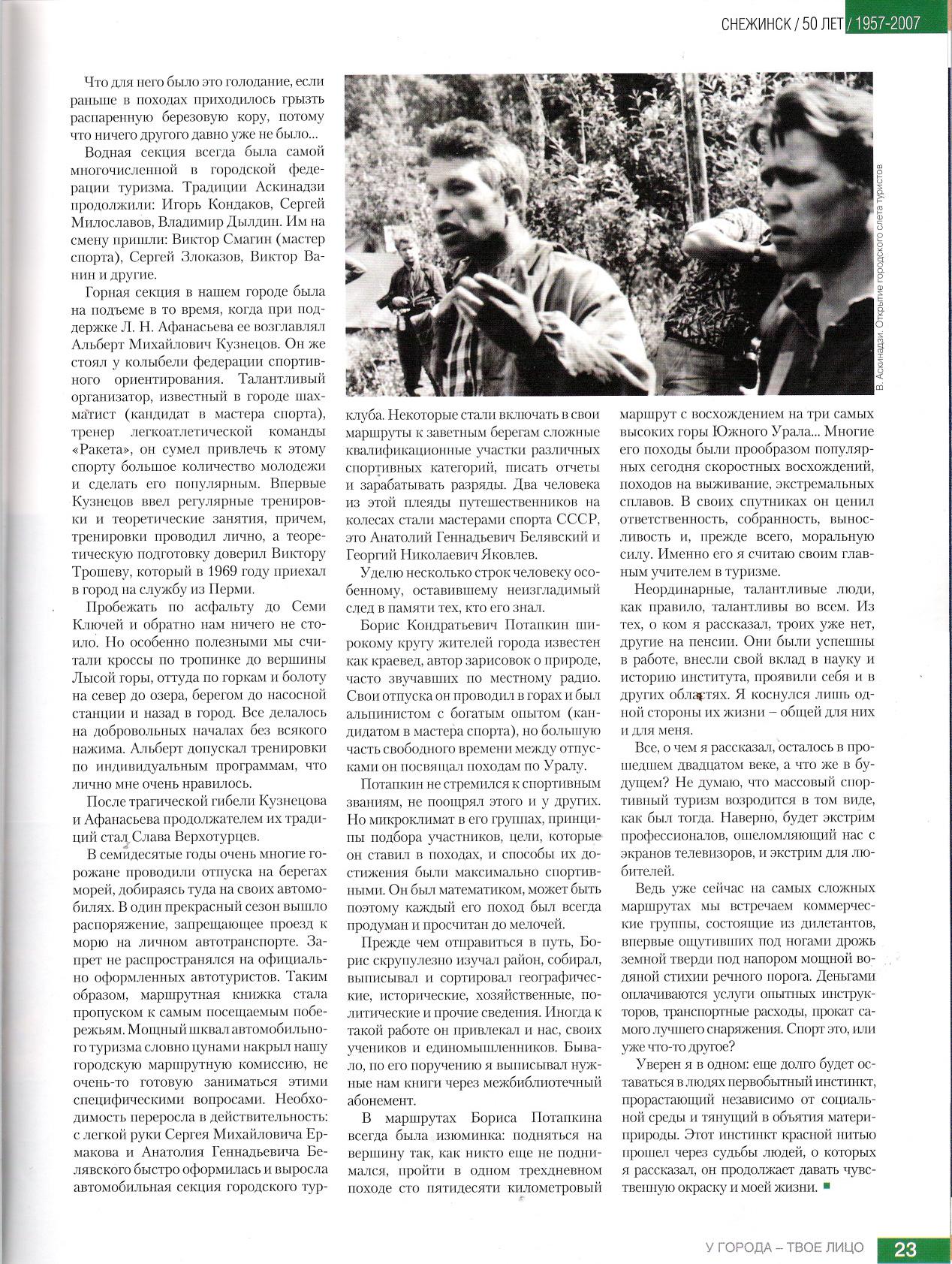 Valentina Pavlovna considers Sasha Kolevatov to be a true altruist and a caring comrade, a person who does not light up the team and does not often joke, but is always engaged in a generally useful routine, a kind of gray horse, on whose unnoticed labors and merits the success of the event rests. It was like he specifically recruited a group of rookies for the opportunity to teach them something. This means that highly complex hikes were lower in his priorities than the desire for live communication and sharing his experience.