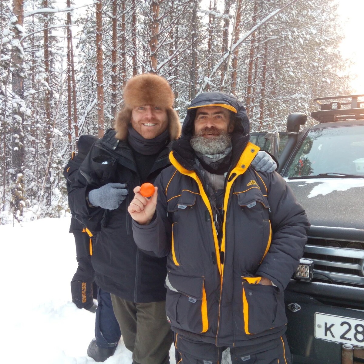 At around 2 pm, the group paused for a modest lunch of smoked pork loin, a handful of croutons, sugar, garlic and coffee, all stocked up in the morning. There was a strong southwest wind accompanied by snow-fall. Then the trail came to an end: it was hard to move cross-country in snow up to 120 cm (4 feet) deep. After two more stretches, at around 5 pm the group decided to stop for the night. In the evening, the temperature fell to -26°С (-15°F), with a heavy west wind knocking snow down the cedar and the pines. Luckily, thanks to the dead-wood and high fir-trees, they had everything necessary for an overnight stay: a blazing campfire and a tent on fir twigs. See all diary entries and photos from