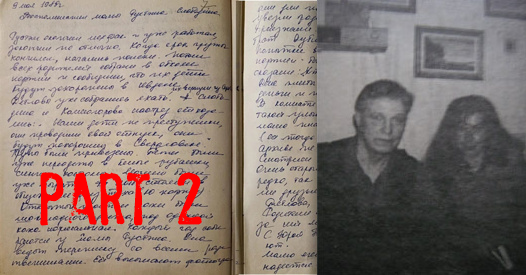 Alexey and Elena Koskin were the first-generation sleuths who went to the archive and copied as many of the case files as they could. Then, suddenly, on December 27, 2012, he announced that he would no longer be involved. Many explained this with their divorce. Alexey Koskin was friends with Yuri Kuntsevich. Kuntsevich headed the Memory fund, and after his death, Alexey Koskin was compelled to step back into action. He is now the head of the memory fund left as a legacy by Yuri Kuntsevich. The notes are published for the first time, having been taken directly by Elena Koskina, who spoke with searchers, Slobodin's mother, and sister.