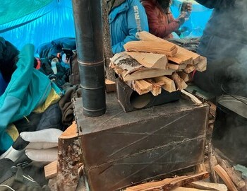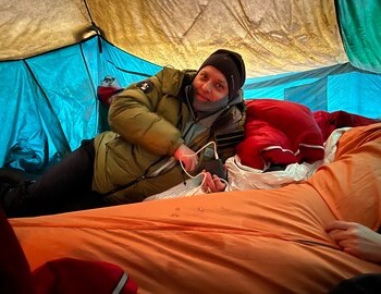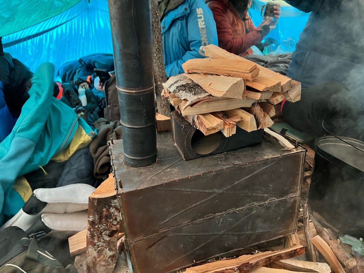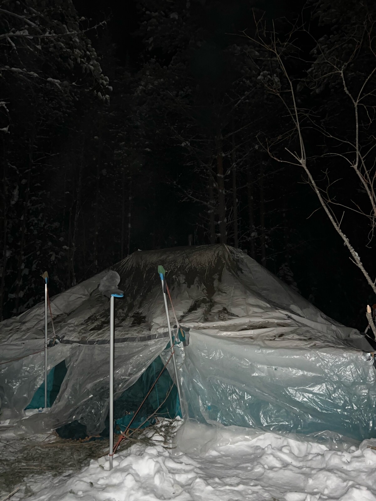 Задач необычайно много, начиная с поисков лабаза и заканчивая установкой палатки в сильный ветер, обрушением наддува на ручье. Попытаемся всё выполнить.